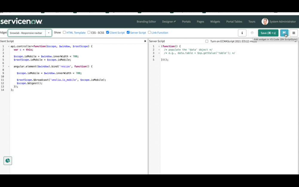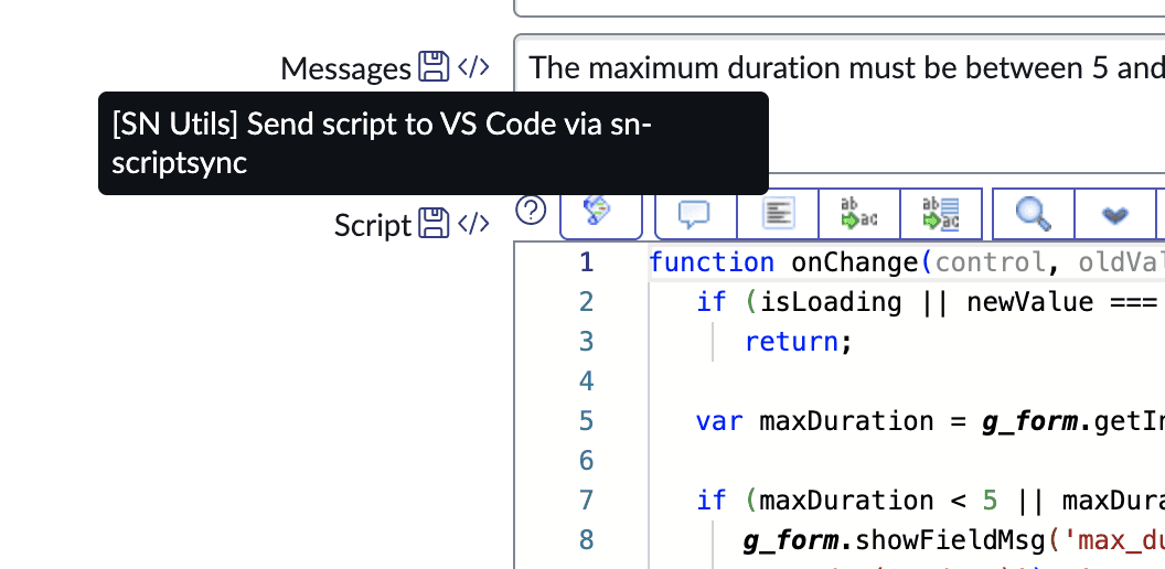 Dans ServiceNow, sur un script, cliquer sur la petite icône sur le script
