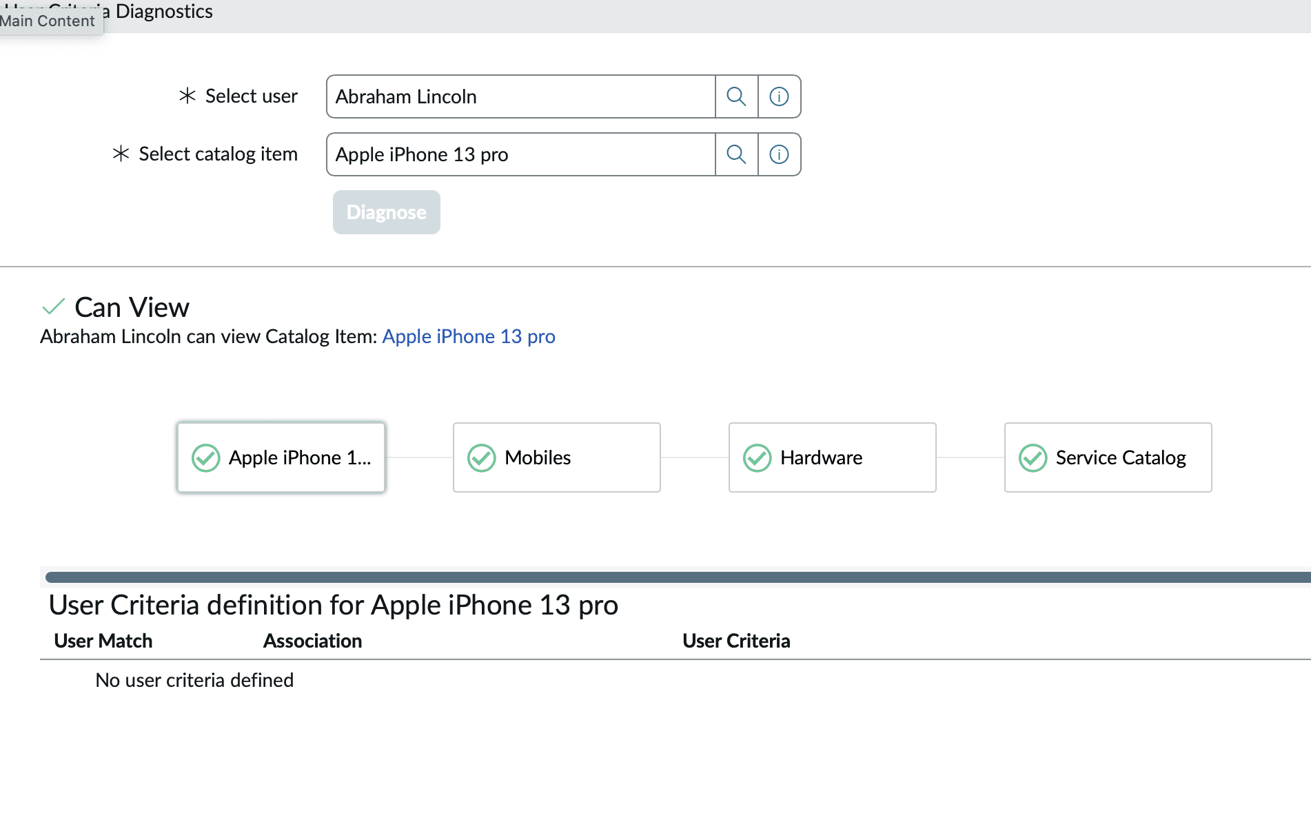 User Criteria Diagnostic : l'outils pour debugger les permissions sur les items de catalogue et les articles de connaissances